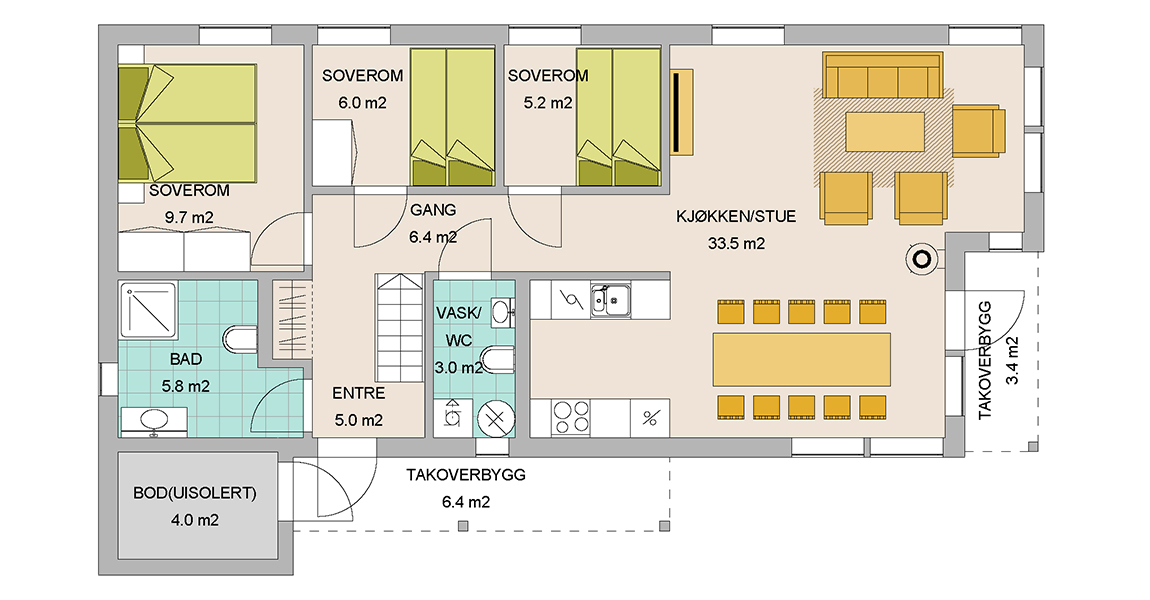 En modell som lett tilpasses de fleste tomter grunnet form og fasong, samt at du har siktlinjer fra tre sider fra stue/kjøkken.